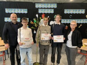 Wiktor Kaczmarek z klasy 8b zdobył I miejsce, wykazując się imponującą wiedzą i doskonałym przygotowaniem.