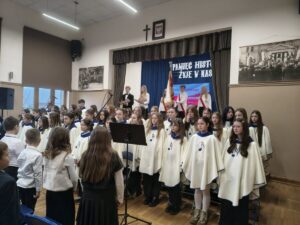 Apel uświetnił wzruszający występ chóru szkolnego, którego patriotyczne i okolicznościowe pieśni podkreśliły podniosły charakter wydarzenia i wprowadziły wszystkich obecnych w atmosferę wspólnego świętowania oraz zadumy.
